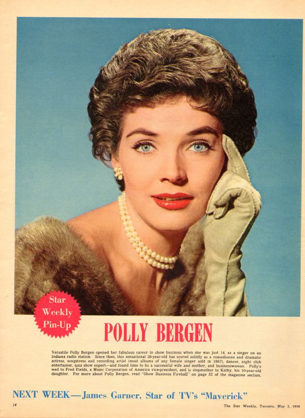Apr. 12, 1958 Tab Hunter | Apr. 19, 1958 Jane Powell | Apr. 26, 1958 John Saxon | May 3, 1958 Polly Bergen | May 10, 1958 James Garner |