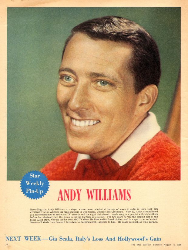 July 26, 1958 Dick Clark | Aug. 2, 1958 Sandra Dee | Aug. 9, 1958 Anne Francis | Aug. 16 1958 Andy Williams | Aug. 23, 1958 Gia Scala |