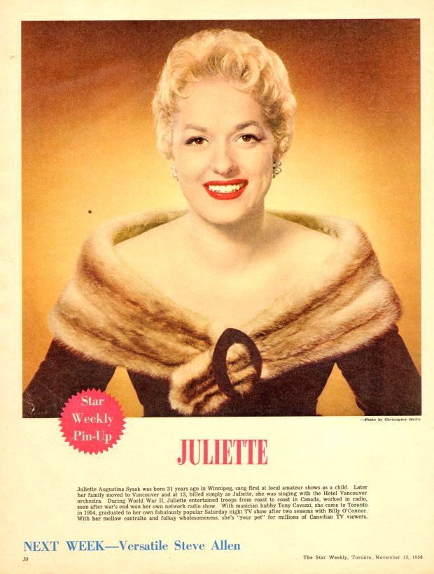 Nov. 8, 1958 Bing Crosby | Nov. 15, 1958 Juliette | Nov. 22, 1958 Steve Allen | Nov. 29 1958 Jill St. John | Dec. 6, 1958 Andy Wilson |