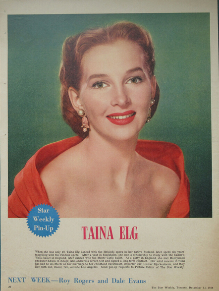 Dec. 13, 1958 Taina Elg | Dec. 20, 1958 Roy Rogers and Dale Evans | Dec. 27, 1958 Jill Corey | Jan. 3, 1959 Tony Curtis, Janet Leigh | Jan. 10, 1959 James Stewart and Kim Novak |